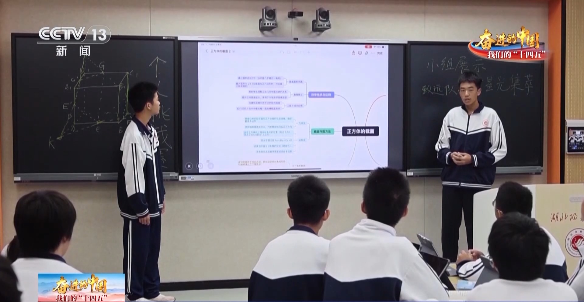 这是阳新一中一节关于“正方体截面探究”的数学课,轻点触屏,三维立体图形便在电子白板上自由旋转、切割,学生们不仅能直观感知“几何空间”,还可以通过智慧平台生成思维导图梳理知识点,获取个性化习题。曾经“黑板+粉笔”的教学场景,正悄然改变。