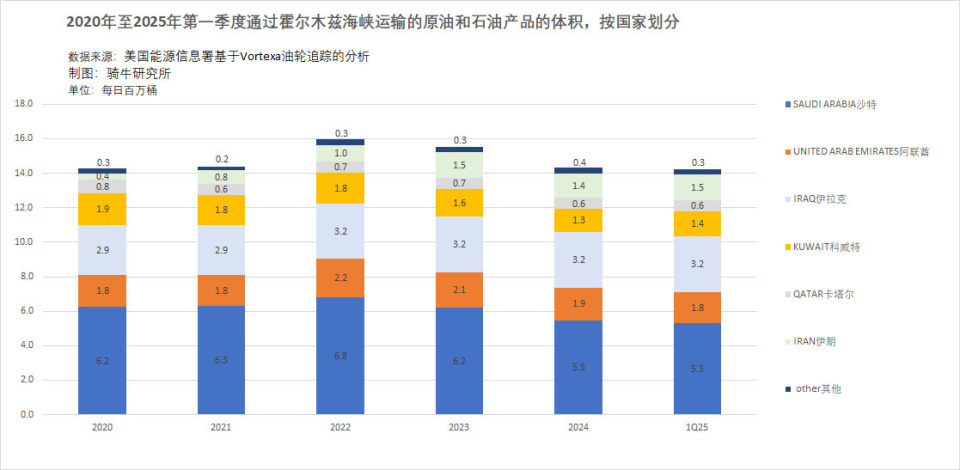 霍尔木兹海峡是全球石油贸易的“生命线”,连接波斯湾与阿曼湾,每天约有2000万桶原油和石油产品通过此处,占全球石油海运量的20%-31%,每日贸易价值超过13亿美元。其中包括沙特、伊拉克、阿联酋、科威特等海湾产油国的主要出口通道,以及卡塔尔的液化天然气出口。